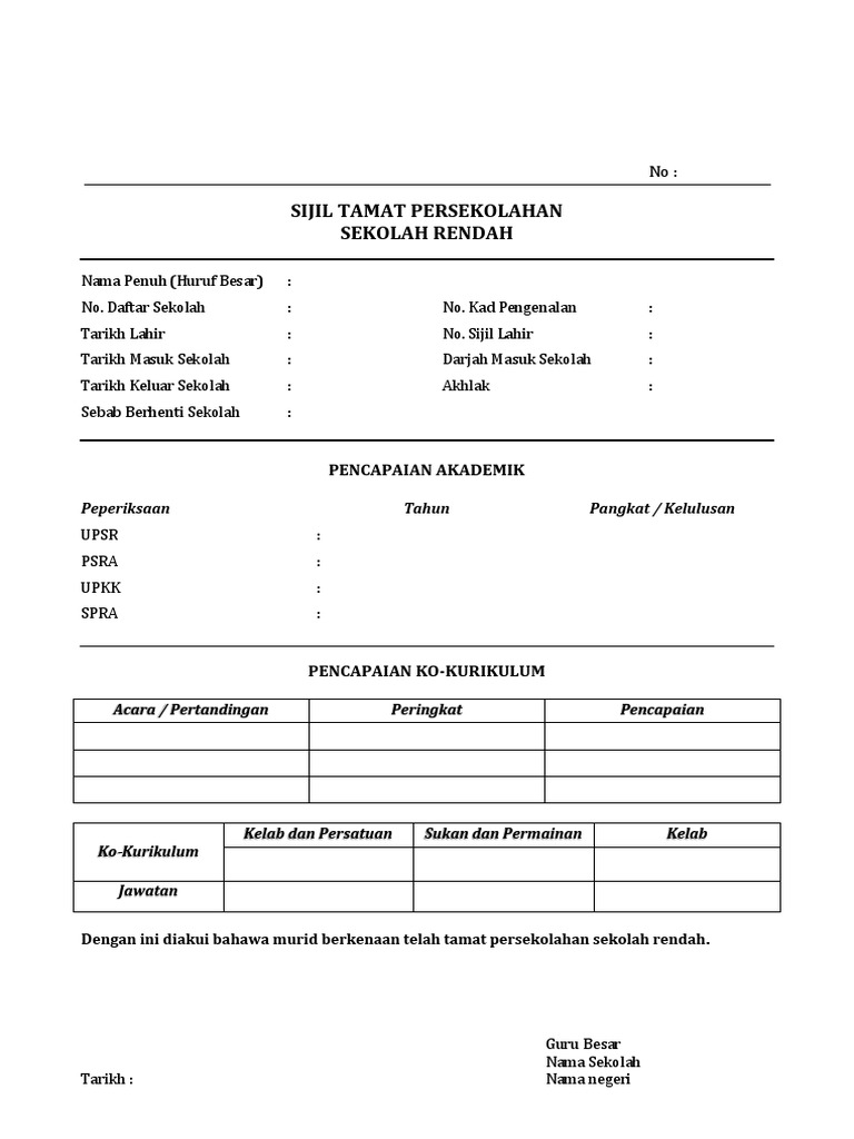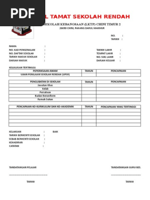 Sijil Tamat Persekolahan Sekolah Rendah Skut Pdf